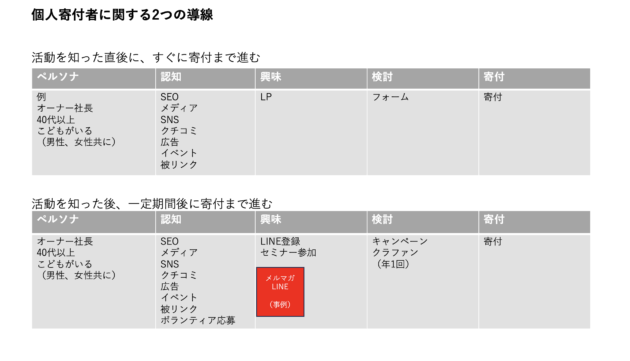 - ボランティアで参加者が継続寄付者になってもらうための動線設計の最適化