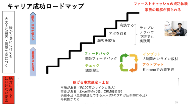 一方で、後者の決裁者と合う機会は、様々な交流会で再現性高く会えるため、決裁者に合う頻度を考えると、圧倒的にDXの方が有利になります。