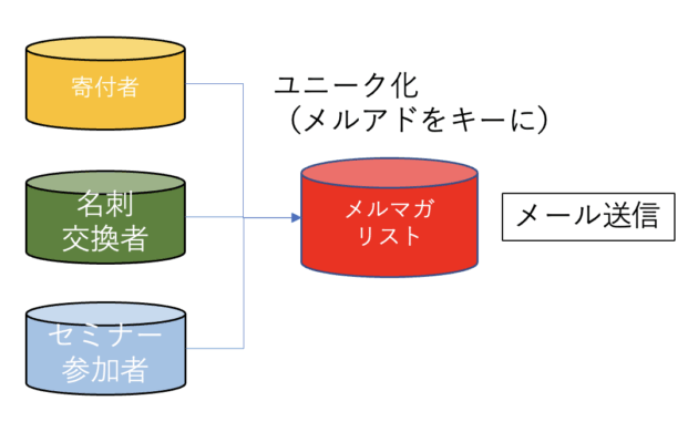この工程がポイントなのですが、実は、メルマガ配信NGの情報を、メルマガリストに紐づけて、メルマガリストアプリで一括反映する工程が必要になります。