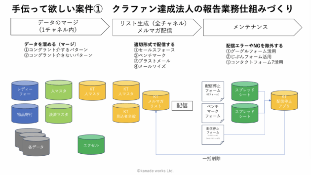 キントーン(kintone)ならクラファン達成後に必要なリストをつくったり、リストメンテナンスをする仕組みの実装ができます。