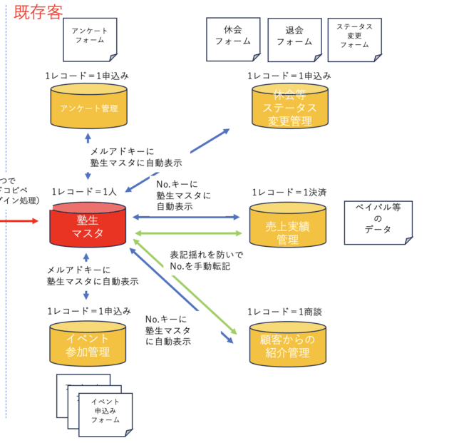 以下のように体系的に情報を整理する事で、全スタッフで塾生ごとの情報が分かるようになります。