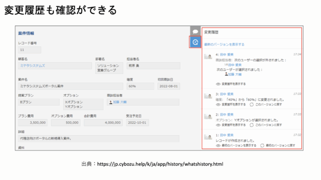 データや議論の履歴がすべて残るため、後から振り返れる。