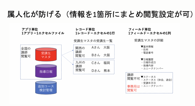 - 属人化や情報漏れを防ぎ、組織全体の効率を底上げする仕組み