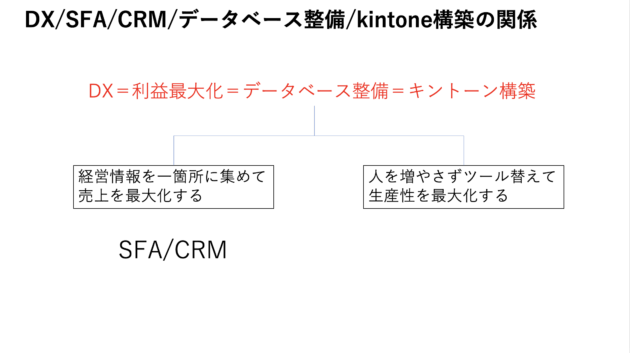 売上を最大化するために、SFA/マーケティングファネル、CRMという仕組みを構築し、一番重要な見込顧客、既存顧客の情報をキントーンに集約し、集約したデータをチームで活用して売上を上げるための打ち手を行う体制をつくることができれば、属人化を防ぐことができます(誰かが辞めても売上が急に落ちる体制を防げる)