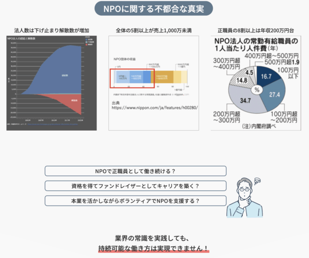 NPO法人だけでも47,000法人導入の余地がありますし、導入済みの法人も最適化ができていません。