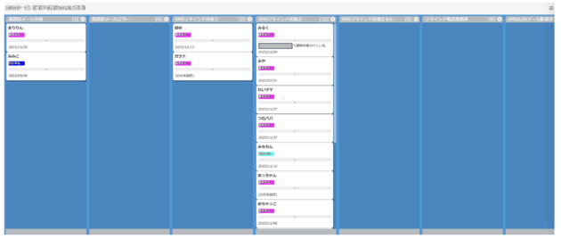 そこを、アーセス様が提供されているKANBANというプラグインを実装すれば、以下のように、視覚的に閲覧ができるようになります。